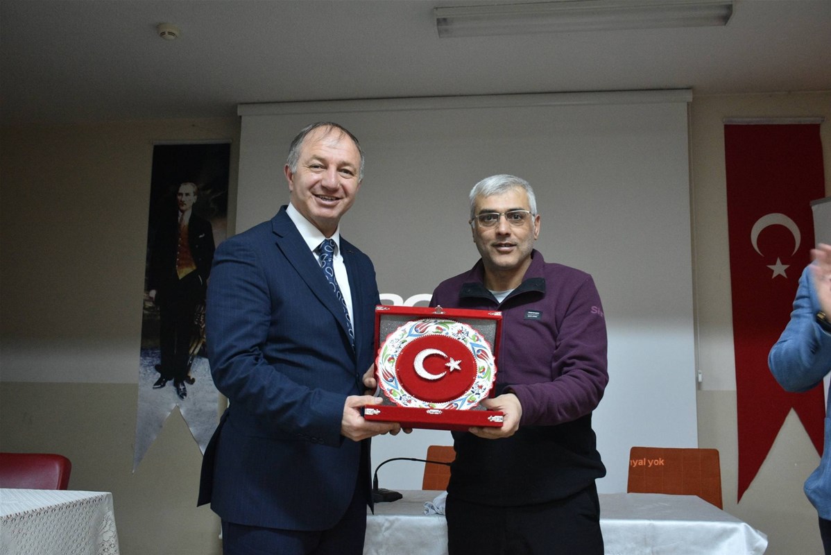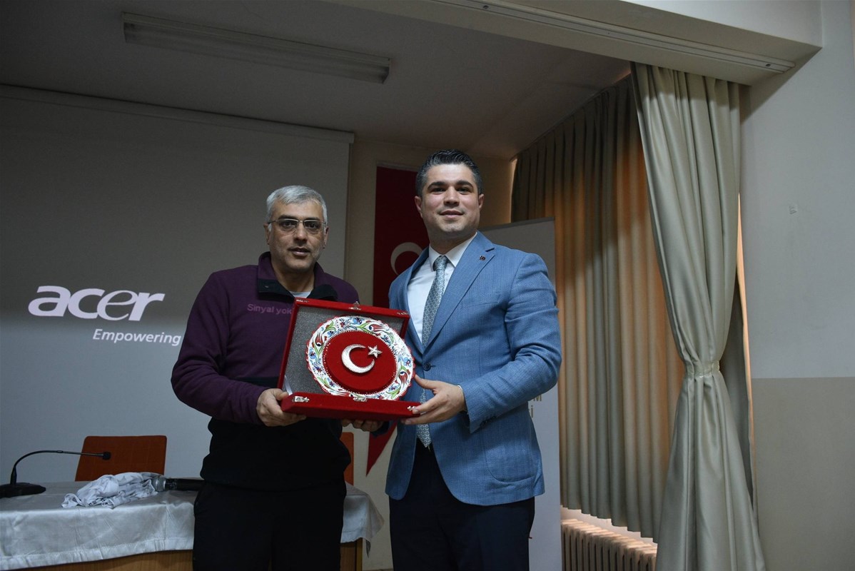Anadolu Lisesi’ndeki ‘Tecrübe Paylaşımı’ konulu söyleşiye Aziziye Gençlik Merkezi Müdürü Zülküf Yılmaz, Reşit Karabacak Spor Lisesi Müdürü Sinan Topallı, Müdür Yardımcıları Erdal Emeç, Ersin Dizlek, okulda görev yapan öğretmenler ile Aziziye Gençlik Merkezi Gençlik Liderleri katıldı. Program sonunda Erzurum Gençlik ve Spor İl Müdürü Levent Çakmur ile Spor Hizmetleri Müdürü Erdoğan Dönmez, Reşit Karabacak Spor Lisesi Müdürü Sinan Topallı’ya Erzurum temalı forma hediye etti. Topallı ise Gençlik ve Spor İl Müdürü Levent Çakmur ile Spor Hizmetleri Müdürü Erdoğan Dönmez’e okula kattıkları değerden dolayı teşekkür ederek, kendilerine plaket takdim etti.